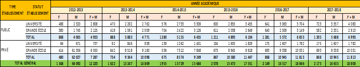 Source : MESRS/Statistical directories