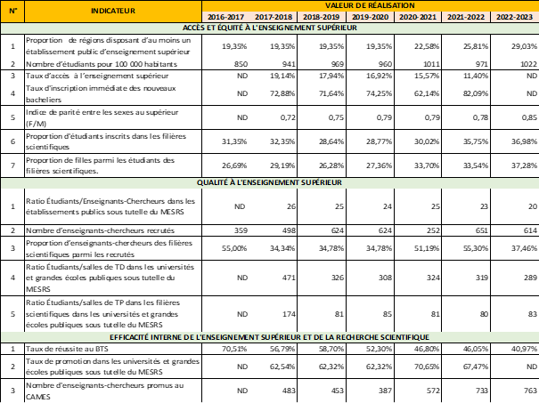 Source : MESRS/Results Indicator Monitoring Matrix (RIMM)