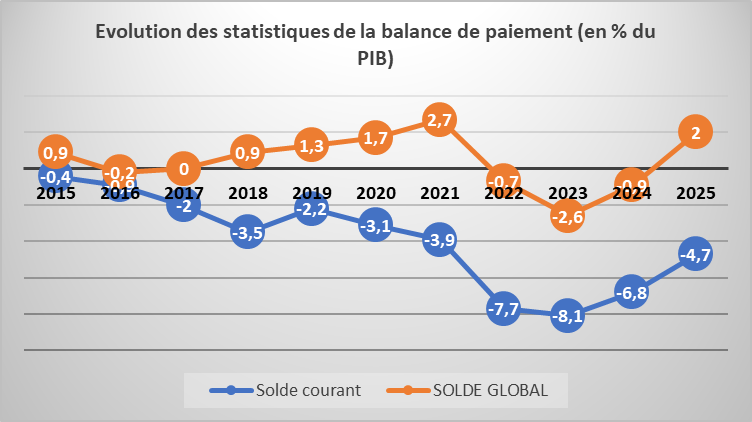 Evolution of balance of payments statistics (as a % of GDP)