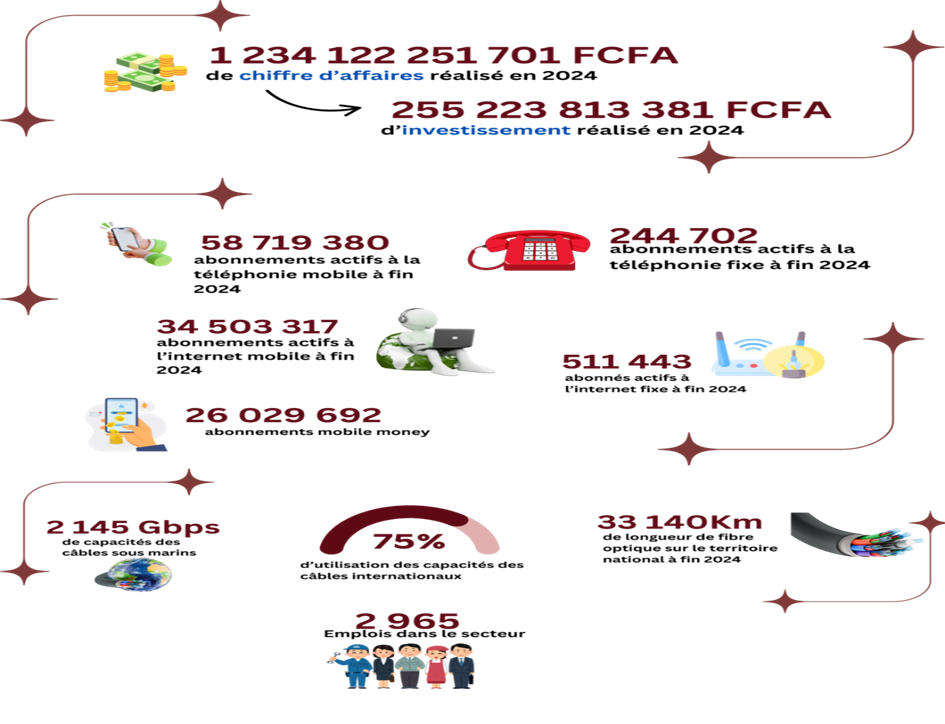 Cette performance du secteur est soutenue par d’importants investissements réalisés par les opérateurs et fournisseurs de services numériques. En 2024, le volume global des investissements réalisés est d’environ 254,38 milliards de FCFA. Sur la période de 2016 à 2023, le cumul des investissements dans le secteur s’élève à plus de 1 700 milliards FCFA. Ces investissements réalisés dans les infrastructures visent notamment à étendre la couverture réseau, et assurer l’amélioration de la qualité de services fournis aux populations.